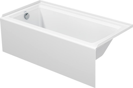 Rectangular, Installation Type: Alcove, Integrated acrylic panel front, White, Material: Sanitary acrylic, Number of backrests: 1 Right, Includes support frame, Overflow: Yes, Drain orientation: Left, Overflow position: Foot end, Capacity gal: 26 gal, Internal Depth: 18 7/8 ", cUPC listed: Yes