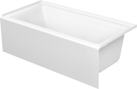 Rectangular, Installation Type: Alcove, Integrated acrylic panel front, White, Material: Sanitary acrylic, Number of backrests: 1 Left, Includes support frame, Overflow: Yes, Drain orientation: Right, Above the ground, Overflow position: Foot end, Capacity gal: 39 gal, Internal Depth: 18 7/8 ", cUPC listed: Yes