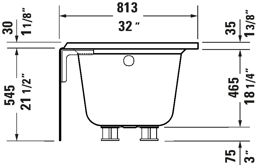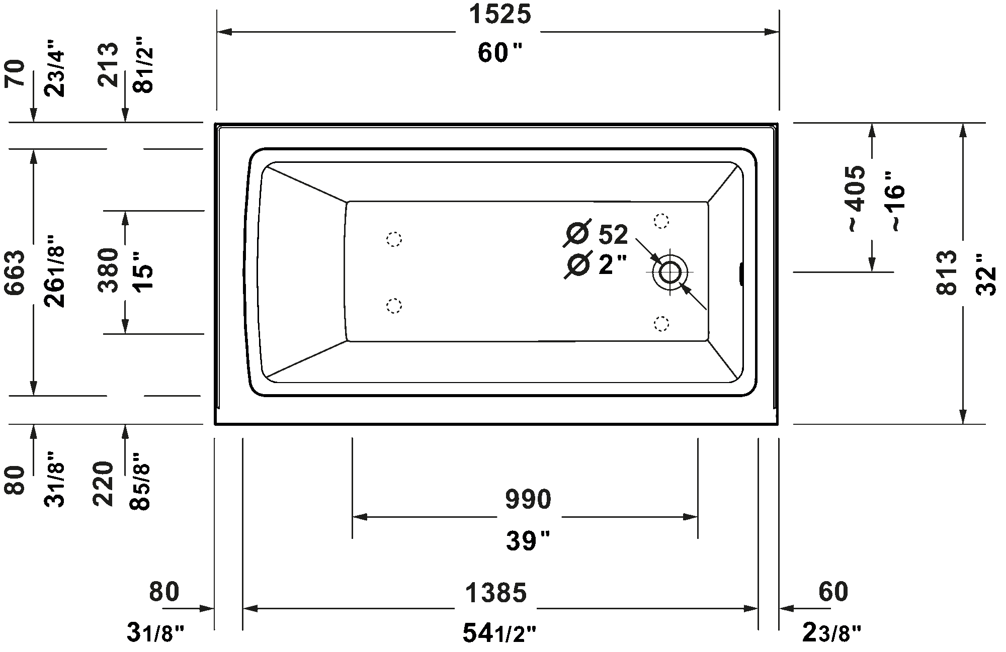 Remarks: Dimensions shown in downloads shall not be used for cut-out templates. Cut-out templates are available upon request. All drawings contain the necessary measurements which are subject to standard tolerances. They are stated in inch and mm, are drawn on a scale of 1:20 and are non-binding. Exact measurements, in particular for customized installation scenarios, can only be taken from the finished ceramic piece.