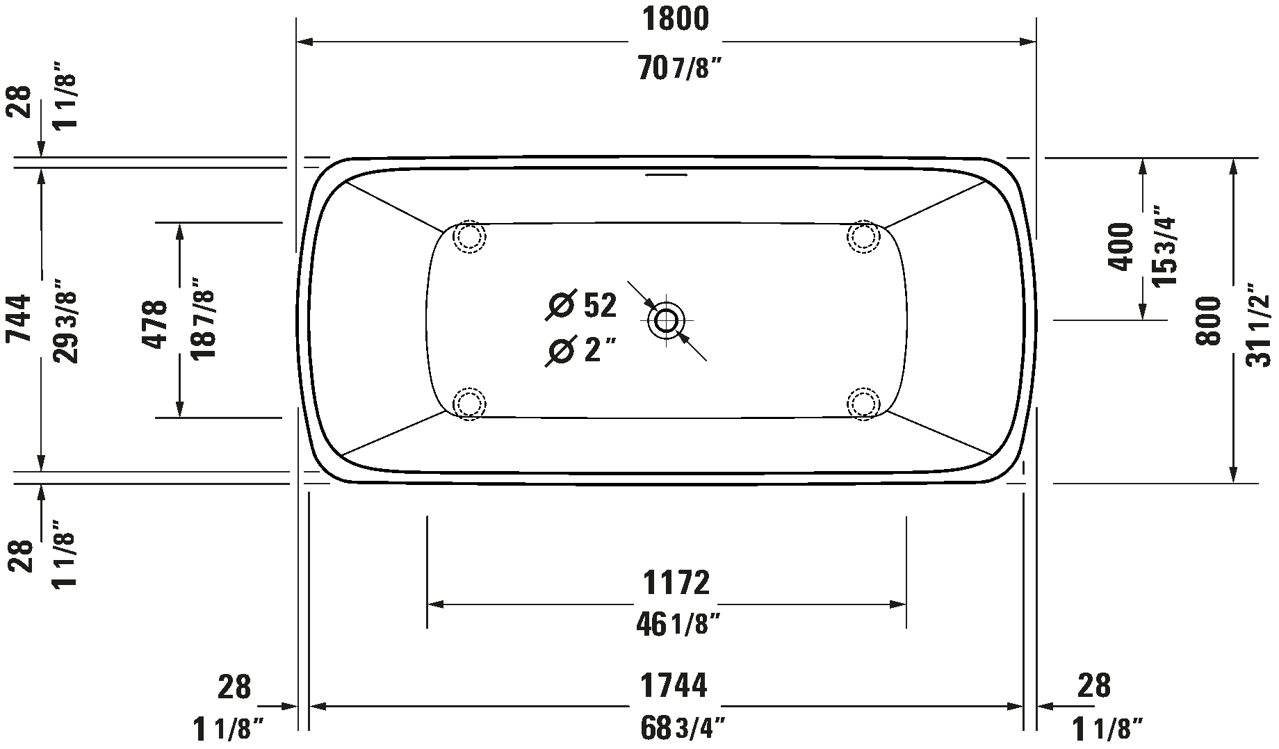 Rectangular, Installation Type: Freestanding, Seamless panel, Material: Polymer cast, DuroCast Plus, Number of backrests: 2, Includes support frame, Includes drain and overflow, Overflow: Yes, Drain orientation: Middle, Overflow position: Middle, Capacity gal: 70 gal, Internal Depth: 17 3/8 "