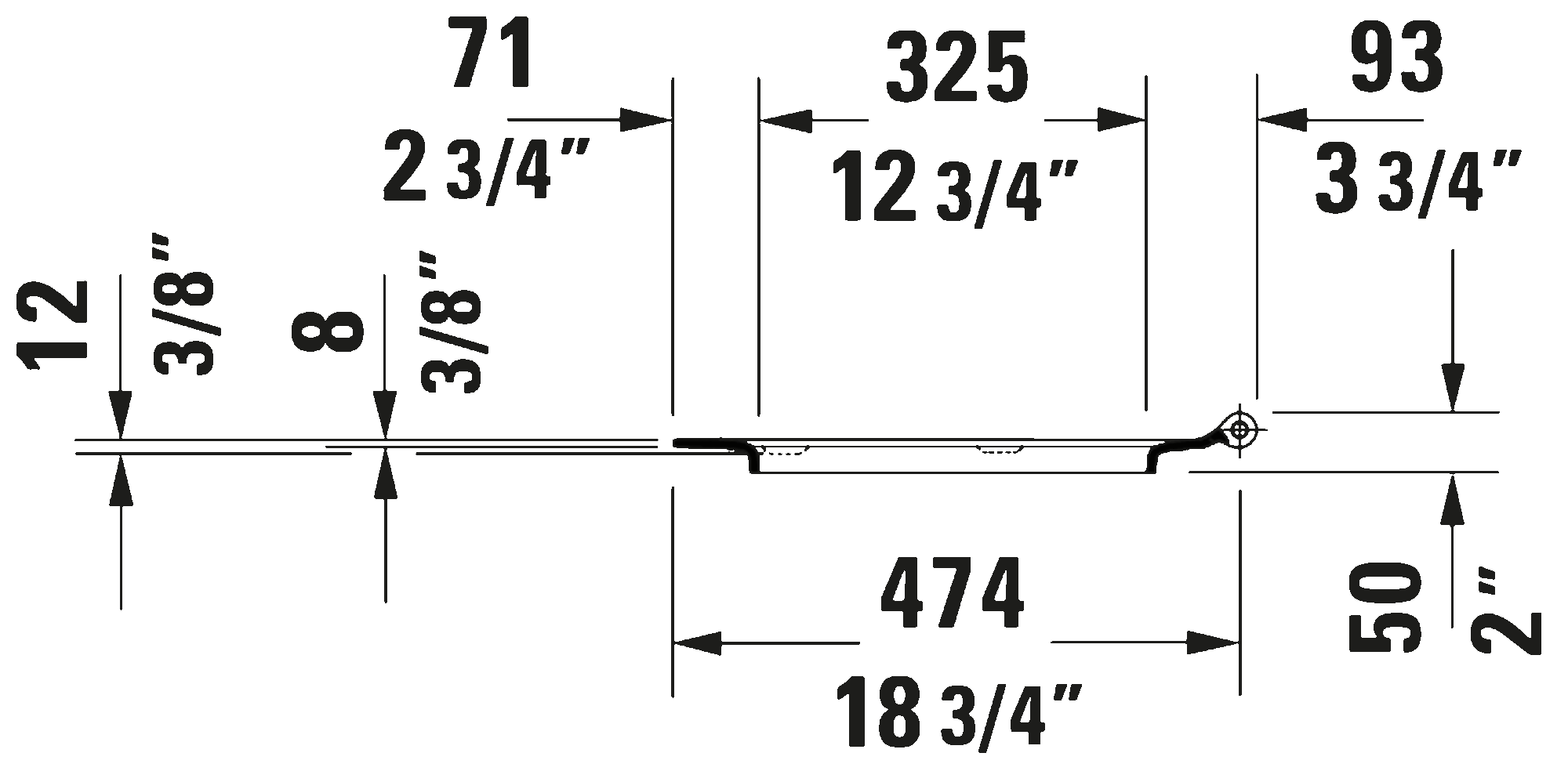 Remarks: Dimensions shown in downloads shall not be used for cut-out templates. Cut-out templates are available upon request. All drawings contain the necessary measurements which are subject to standard tolerances. They are stated in inch and mm, are drawn on a scale of 1:20 and are non-binding. Exact measurements, in particular for customized installation scenarios, can only be taken from the finished ceramic piece.