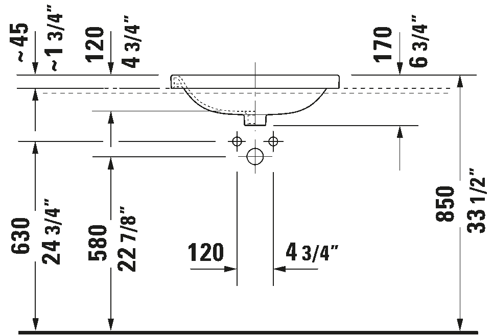 Remarks: Dimensions shown in downloads shall not be used for cut-out templates. Cut-out templates are available upon request. All drawings contain the necessary measurements which are subject to standard tolerances. They are stated in inch and mm, are drawn on a scale of 1:20 and are non-binding. Exact measurements, in particular for customized installation scenarios, can only be taken from the finished ceramic piece.