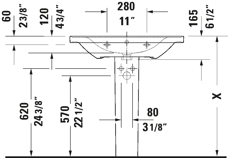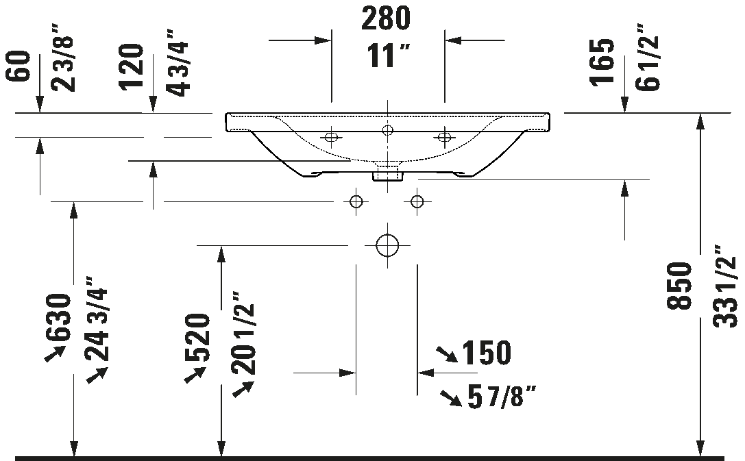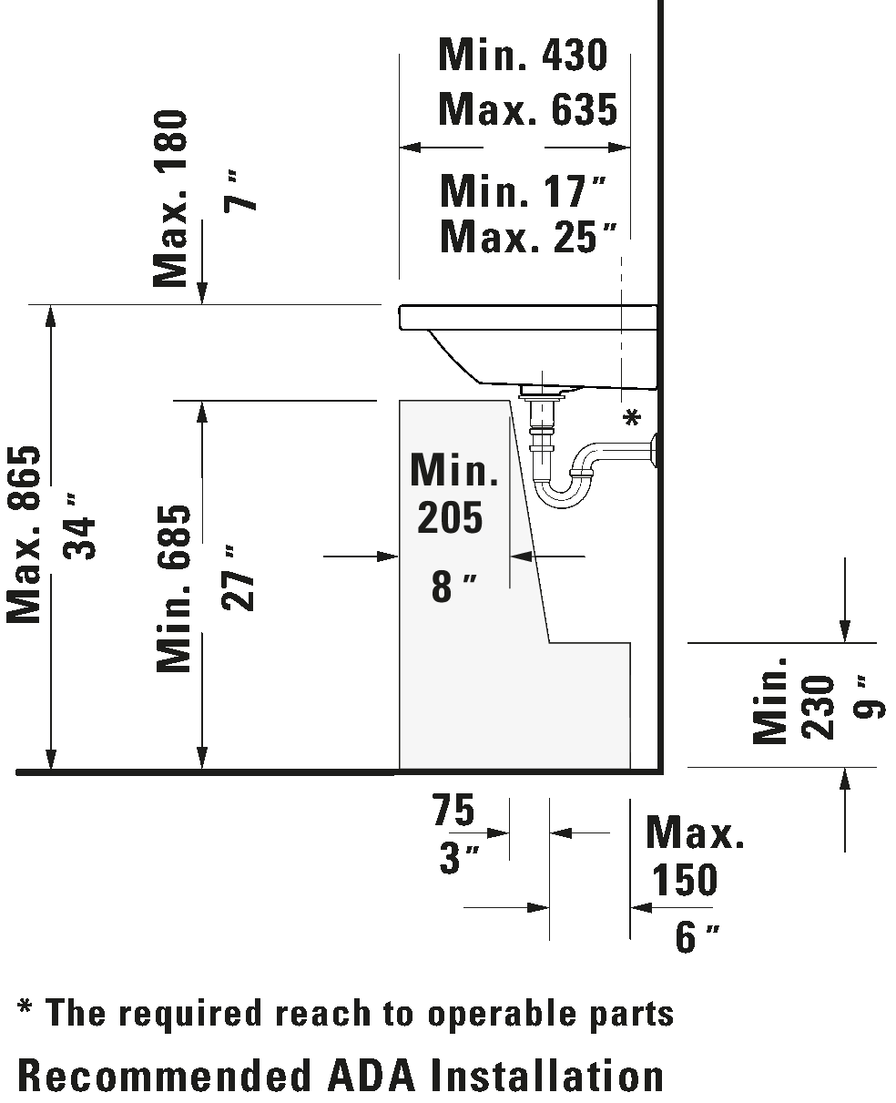 Remarks: Dimensions shown in downloads shall not be used for cut-out templates. Cut-out templates are available upon request. All drawings contain the necessary measurements which are subject to standard tolerances. They are stated in inch and mm, are drawn on a scale of 1:20 and are non-binding. Exact measurements, in particular for customized installation scenarios, can only be taken from the finished ceramic piece.