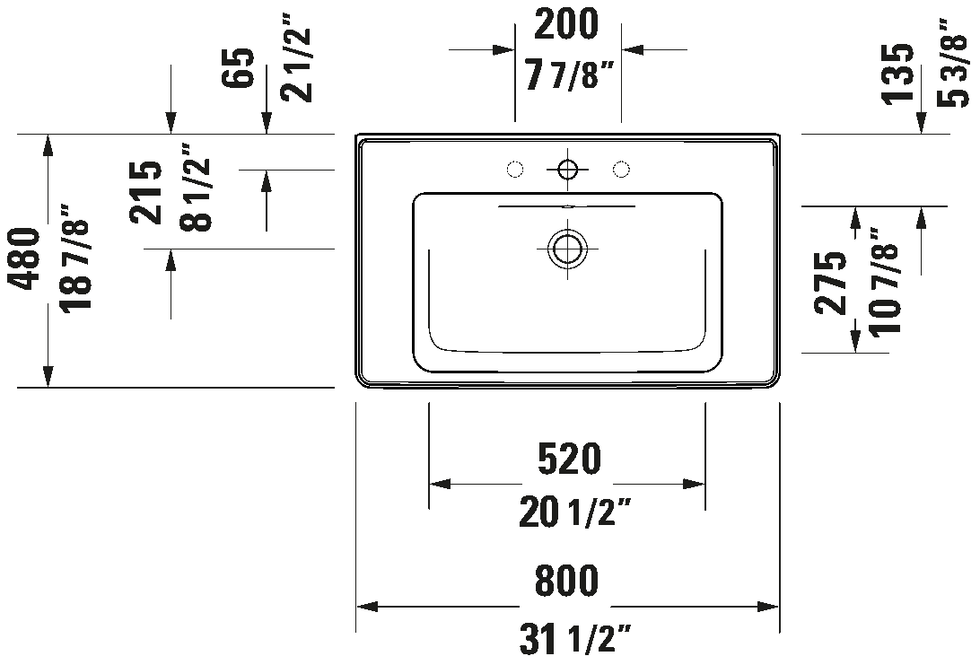 D-shaped, Includes faucet deck: Yes, Overflow: Yes, Underside glazed, 31 1/2 ", Internal dimensions: 20 1/2 "x10 7/8 ", ADA: Yes