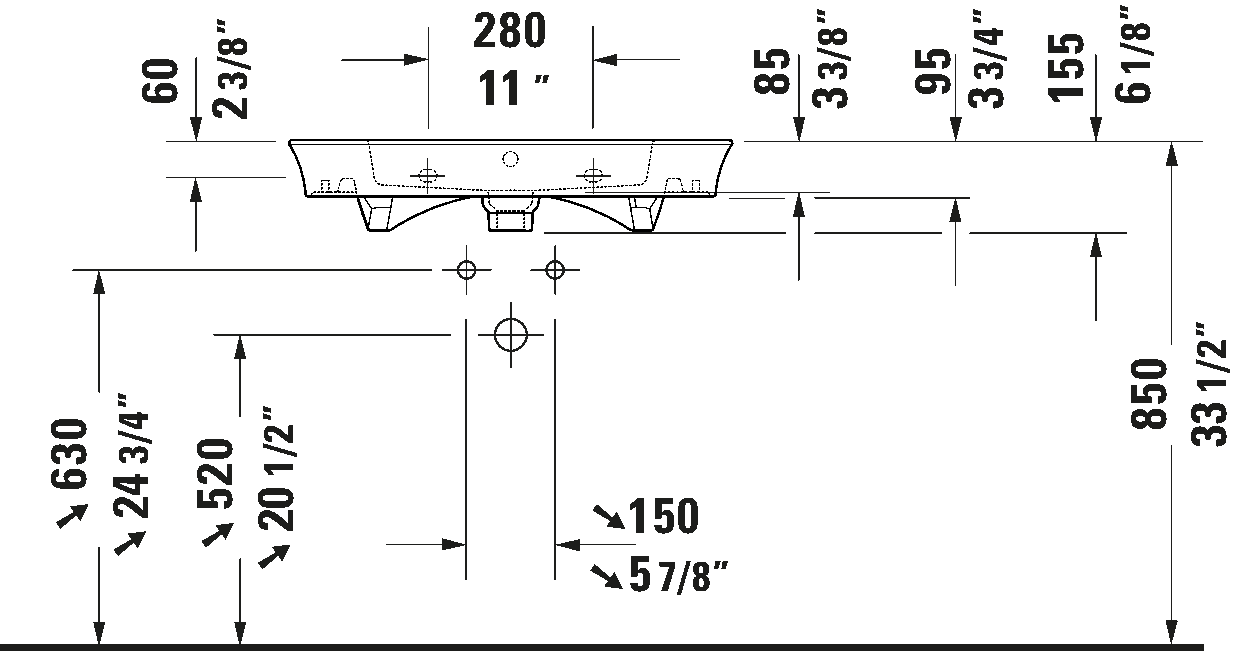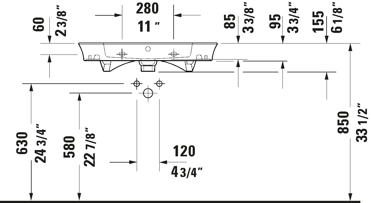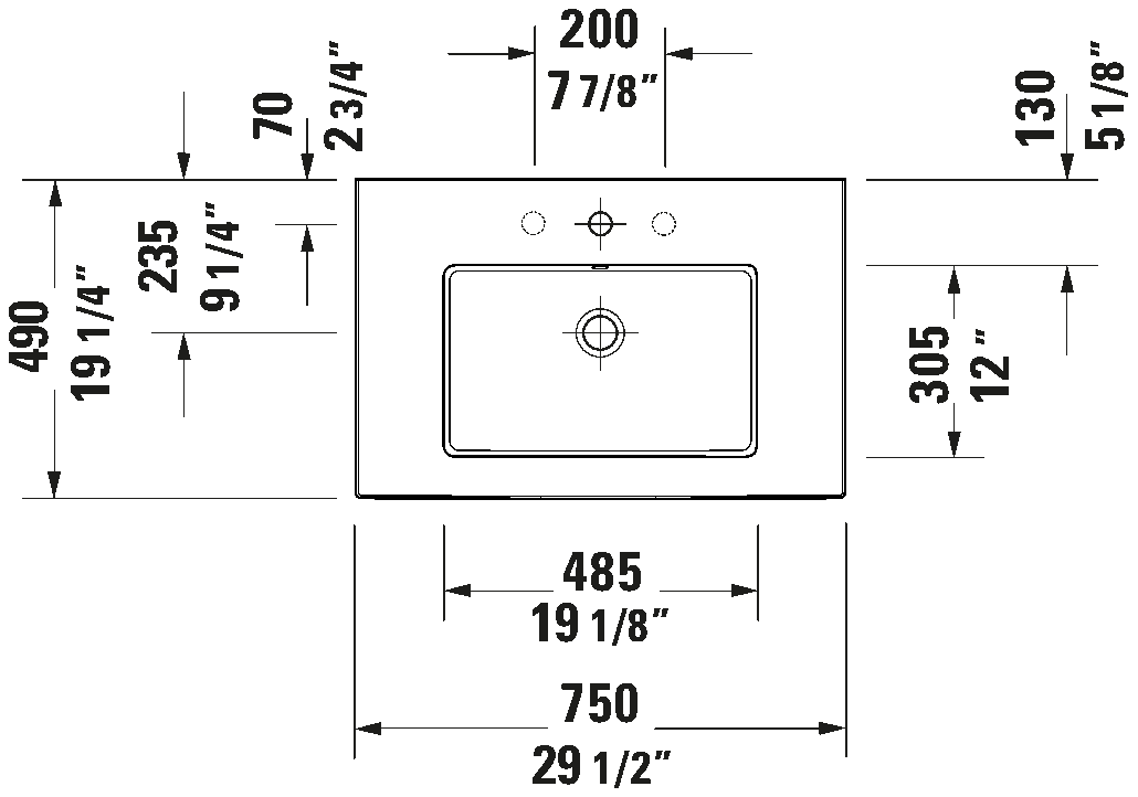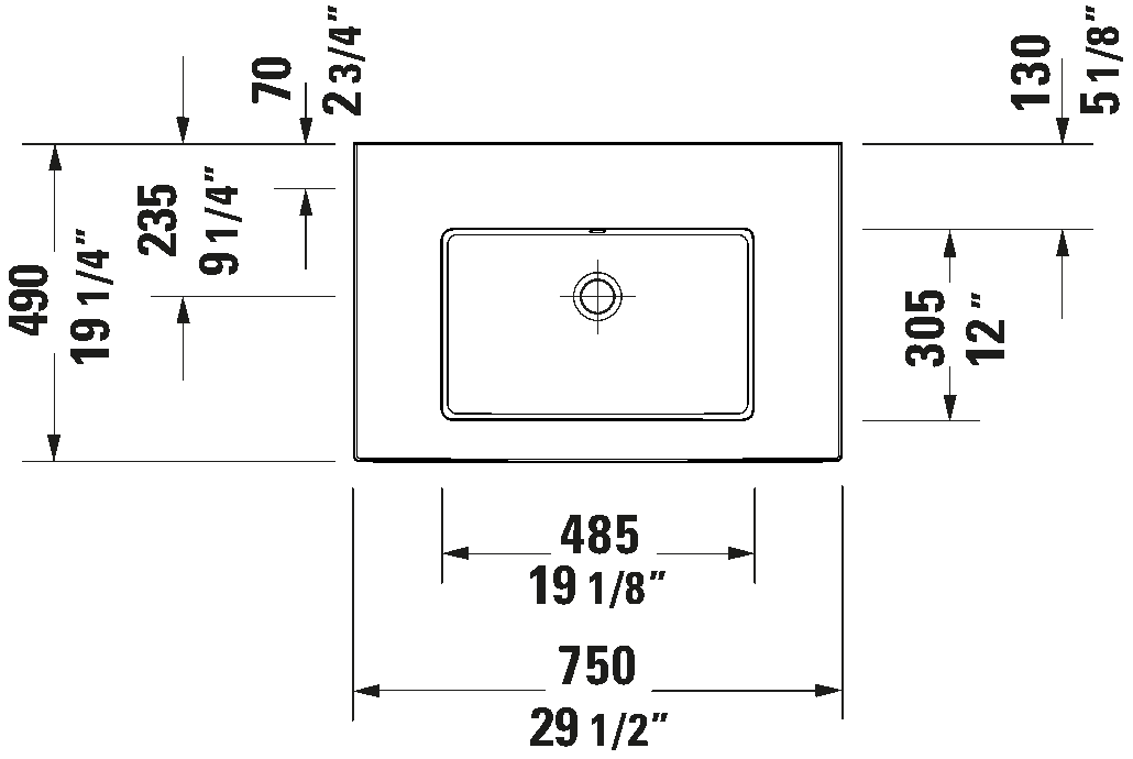 Remarks: Dimensions shown in downloads shall not be used for cut-out templates. Cut-out templates are available upon request. All drawings contain the necessary measurements which are subject to standard tolerances. They are stated in inch and mm, are drawn on a scale of 1:20 and are non-binding. Exact measurements, in particular for customized installation scenarios, can only be taken from the finished ceramic piece.