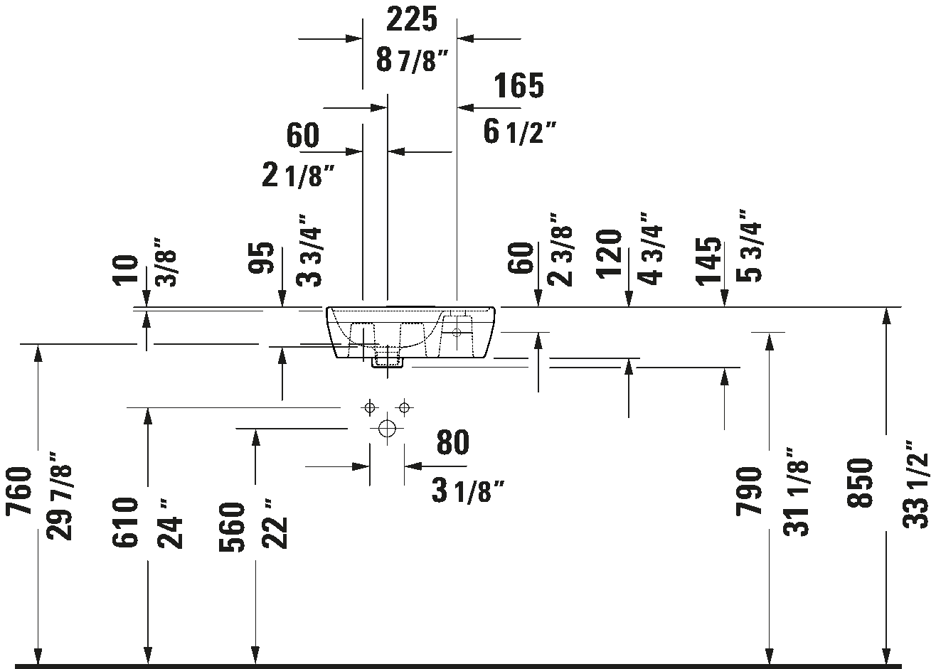 Remarks: Dimensions shown in downloads shall not be used for cut-out templates. Cut-out templates are available upon request. All drawings contain the necessary measurements which are subject to standard tolerances. They are stated in inch and mm, are drawn on a scale of 1:20 and are non-binding. Exact measurements, in particular for customized installation scenarios, can only be taken from the finished ceramic piece.