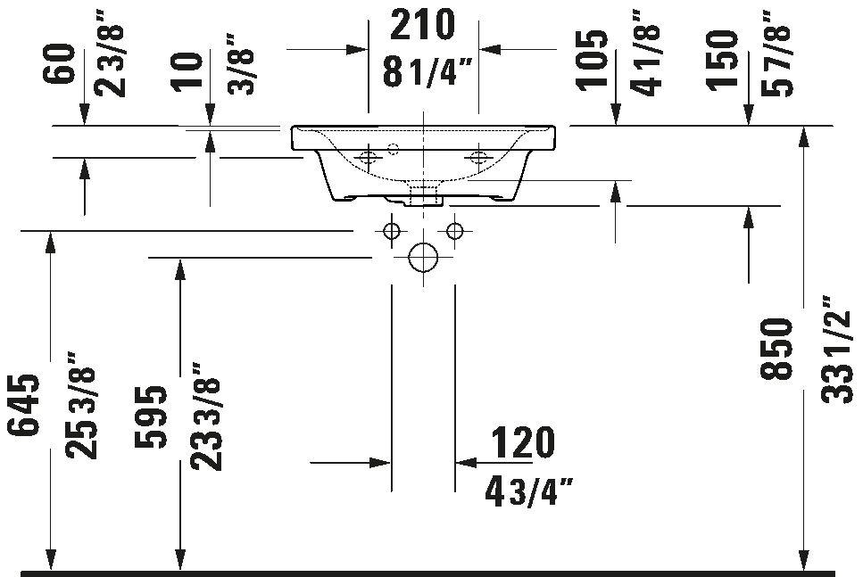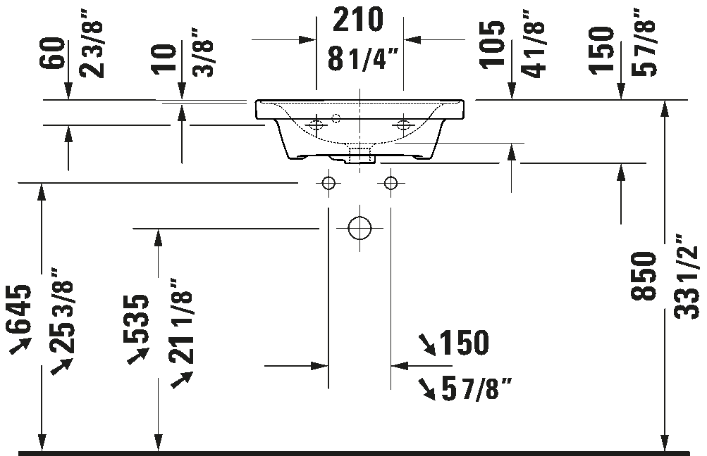Remarks: Dimensions shown in downloads shall not be used for cut-out templates. Cut-out templates are available upon request. All drawings contain the necessary measurements which are subject to standard tolerances. They are stated in inch and mm, are drawn on a scale of 1:20 and are non-binding. Exact measurements, in particular for customized installation scenarios, can only be taken from the finished ceramic piece.