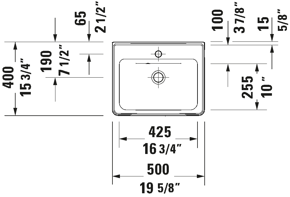 White High Gloss, Rectangular, Number of basins: 1 Middle, Includes faucet deck: Yes, Overflow: Yes, Underside glazed, 19 5/8 ", Internal dimensions: 16 3/4 "x10 "