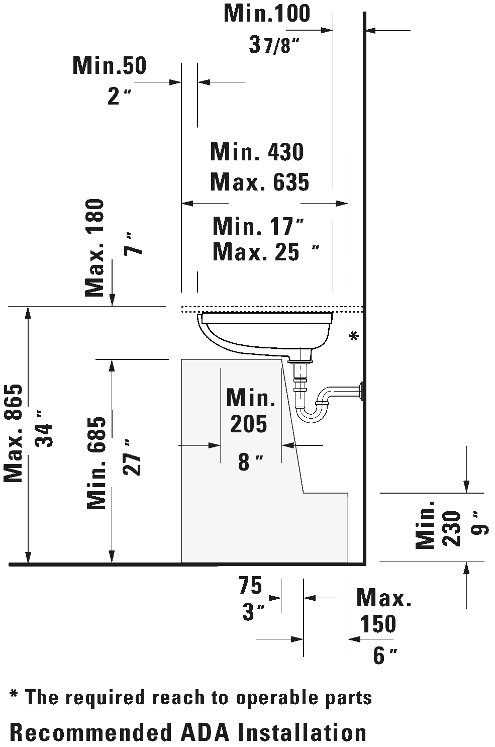 Installation Type: Installation, 21 5/8 "x15 3/4 ", Includes faucet deck: No, Installation Type: Undermount installation, Includes hardware for installation in wooden consoles, ADA: Yes, cUPC listed: Yes, cC/IAPMO®: Yes