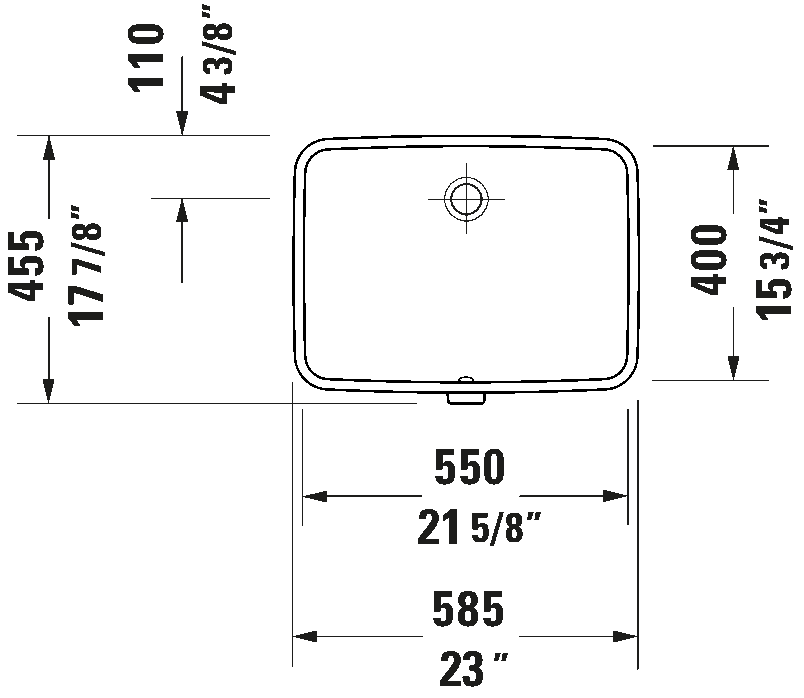 Remarks: Dimensions shown in downloads shall not be used for cut-out templates. Cut-out templates are available upon request. All drawings contain the necessary measurements which are subject to standard tolerances. They are stated in inch and mm, are drawn on a scale of 1:20 and are non-binding. Exact measurements, in particular for customized installation scenarios, can only be taken from the finished ceramic piece.