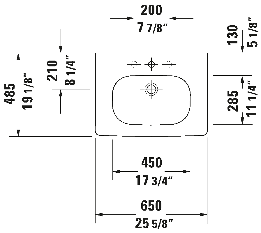 Rectangular, Includes faucet deck: Yes, Overflow: Yes, Underside glazed, 25 5/8 ", Internal dimensions: 17 3/4 "x11 1/4 ", ADA: Yes
