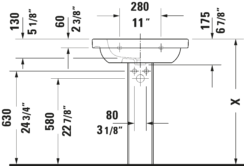 Remarks: Dimensions shown in downloads shall not be used for cut-out templates. Cut-out templates are available upon request. All drawings contain the necessary measurements which are subject to standard tolerances. They are stated in inch and mm, are drawn on a scale of 1:20 and are non-binding. Exact measurements, in particular for customized installation scenarios, can only be taken from the finished ceramic piece.