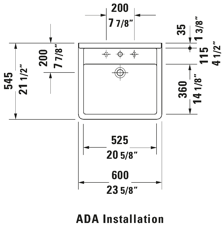 Square, Includes faucet deck: Yes, Overflow: Yes, Barrier free, Underside glazed, Back side glazed: No, 23 5/8 ", Internal dimensions: 20 5/8 "x14 1/8 ", ADA: Yes