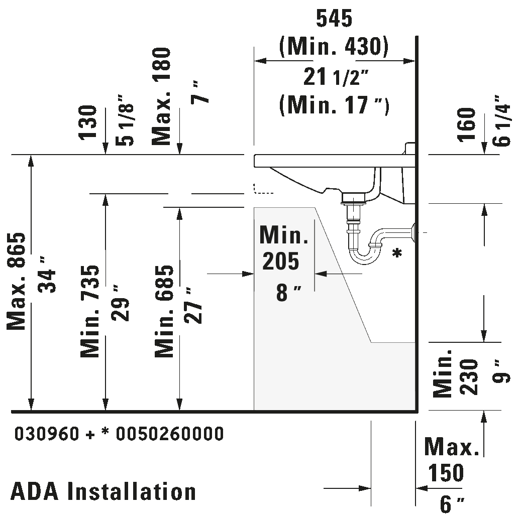 Remarks: Dimensions shown in downloads shall not be used for cut-out templates. Cut-out templates are available upon request. All drawings contain the necessary measurements which are subject to standard tolerances. They are stated in inch and mm, are drawn on a scale of 1:20 and are non-binding. Exact measurements, in particular for customized installation scenarios, can only be taken from the finished ceramic piece.